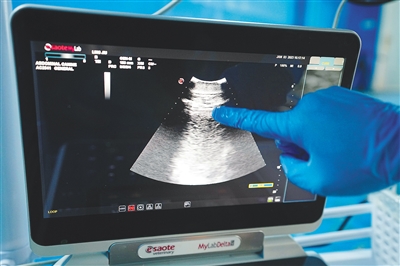 图3 1月3日,保育员志愿者用B超设备为“海棠”检查体内器官。