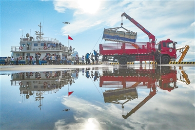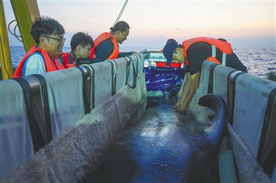 图10 5月25日,“海棠”被转运至利洋358科考船,准备归家。