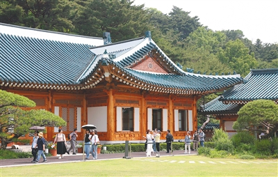 五月二十四日,游客在韩国首尔的青瓦台参观。新华社发