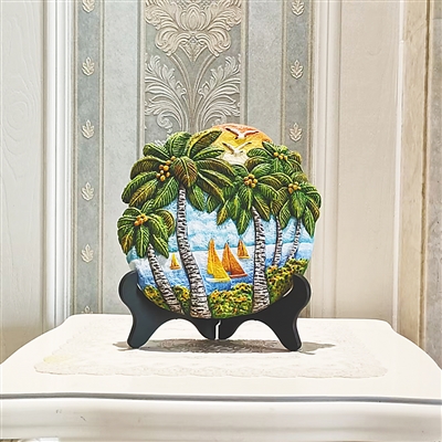 随着越来越多的游客来到海南,吴遇桢也开始尝试在作品上加入海洋、椰树和现代抽象艺术元素,把海南地域文化和现代艺术元素融入创作,作品也不仅仅局限于图画,开始有了冰箱贴、小摆件等,更符合现代人的审美与喜好。