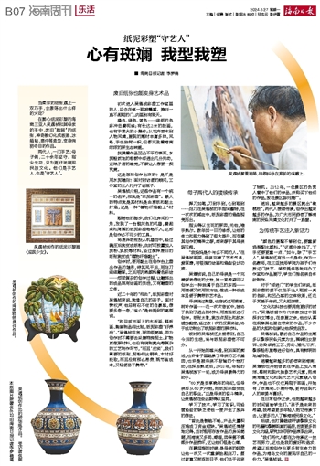 在醉心纸泥彩塑的海南三亚人吴遇桢和其母亲的手中,废旧“脆弱”的纸张,神奇般幻化成版画、冰箱贴、摆件等造型,变身绚丽夺目的作品。