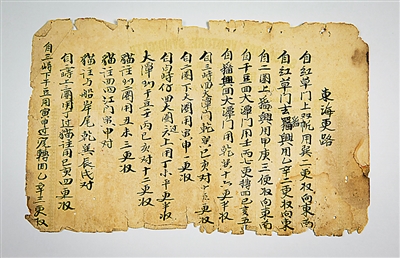 海南省博物馆从琼海潭门征集到的“更路簿”内页。海南日报记者 宋国强 摄