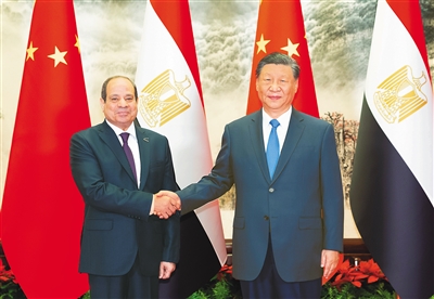 习近平强调,中方支持埃及在国际和地区事务中发挥更大作用,愿同埃方进一步密切在联合国、上海合作组织、金砖国家合作机制等多边平台的协调配合,倡导平等有序的世界多极化和普惠包容的经济全球化,共同维护国际公平正义和发展中国家共同利益。今年是中阿合作论坛成立20周年。中方愿同埃及和其他各方密切沟通合作,建好中阿合作论坛,不断为中阿关系发展注入新动力,推进中阿命运共同体建设。中方也愿同埃及等中非合作论坛非方成员一道,发扬中非友好合作精神,携手构建高水平的中非命运共同体。
