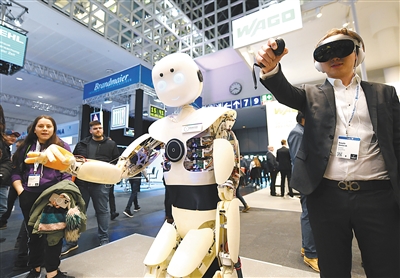 一款智能机器人在德国汉诺威工业博览会上模仿一名男子的肢体动作。 本栏图片均由新华社发