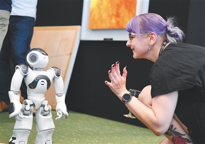 在瑞士日内瓦“人工智能造福人类全球峰会”上展出的一款能和人互动的机器人。