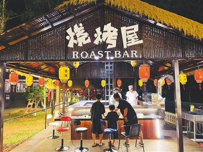 近日,游客在才存共享农庄内的乡村酒吧街消费。本报记者 高懿 摄