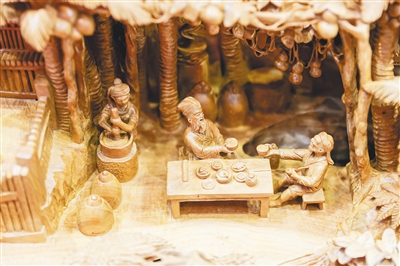 木雕作品《苏东坡在儋州》。本组图片均由本报记者 张茂 摄