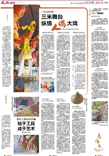 箩筐、鸡笼、提篮、畚箕……走进一户户的屯昌农家,地上放的、墙上挂的,不少都是朴实纤巧的竹制器物,整间平房竹香四溢。