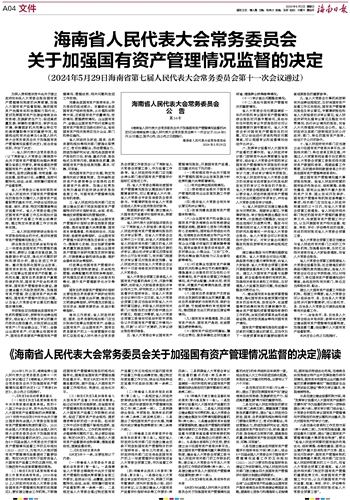 (二)制定《决定》是贯彻落实省委工作要求的具体体现。2018年省委印发《中共海南省委关于建立县级以上人民政府向本级人大常委会报告国有资产管理情况制度的实施意见》,要求建立健全工作机制,不断推进国有资产管理情况报告的规范化程序化,提高我省国有资产管理治理和监督水平。制定《决定》有利于完善监督机制,提升我省人大国有资产监督工作规范化、制度化、法治化水平。