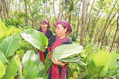 屯昌县乌坡镇芽石铺村,村民在采摘粽叶。 本报记者 李天平 摄