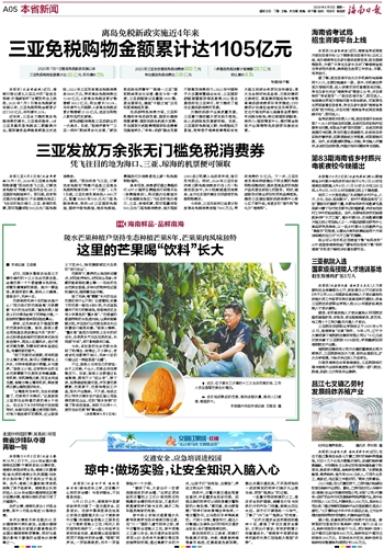 本报讯(记者黄媛艳)近日,海南日报记者从三亚召开的“奋进自贸港·打造新标杆”主题发布会上获悉,2020年7月1日离岛免税新政实施以来,三亚免税购物金额累计达1105亿元,年均增长23%。近年来,三亚全力推动离岛免税消费的增长,三亚海旅超体、cdf三亚凤凰机场免税店二期重磅开业,国际奢侈品牌路易威登正式进驻,2023年三亚发放离岛免税消费券6800万元,带动离岛免税消费达13.89亿元,4家离岛免税店累计销售额300.2亿元,同比增长18.3%。龙年春节七天假期,4家离岛免税店累计销售额21.03亿元,进店及购物人数均创历史新高。