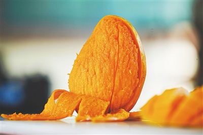 该农场成熟后的芒果,果肉浓郁扑鼻,果肉入口嫩滑,香甜多汁。 本组图片均由本报记者 王程龙 摄
