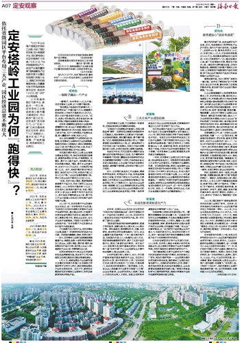 定安县委有关负责人介绍,该县正在研究制定《优化中小企业发展环境奖励资金使用方案》,从科技、数字化、工业设计、融资和品牌等五大赋能着手,进一步完善中小企业公共服务体系建设。“下一步,我们将针对园区已有产业基础,推动各产业在不断提升集聚化、规模化、规范化发展的同时,进一步走向特色化、品牌化、现代化,以企业、产业、行业的共同发展,进一步擦亮‘塔岭’招商品牌,让更多企业安心落户、顺风起航、快速腾飞。”该负责人说,力争到“十四五末”,将定安塔岭工业园打造成营商环境一流、运行机制高效,年营收超100亿元的优质园区。
