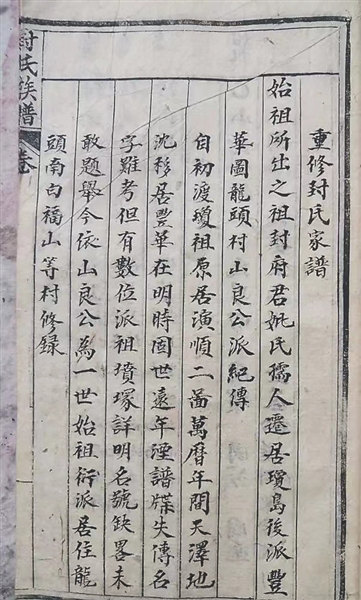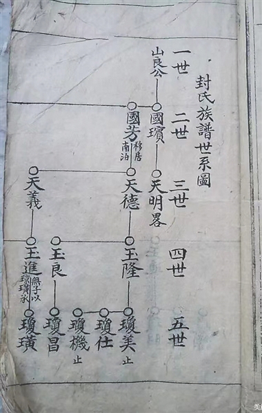 琼北《封氏族谱》世系图首页有一世祖封山良的名讳。