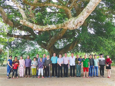 2020年1月,在海口市演丰镇南白村遮天蔽日的大榕树下,部分岛内外封氏族人合影留念。