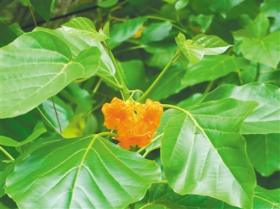 橙花破布木根系发达,生长较快,且耐高温高盐,在干旱贫瘠土壤中都可成长,且抗风能力强,属于热带滨海地区的绿化和防风林建设成员,所以也被称为“海防卫士”。橙花破布木名字中的“破布”则是因为该树的老叶像破布一样暗淡低调。在我国,橙花破布木是我省独有的树种之一,它们有的生长在海水泡不到的沙滩上, 有的甚至就长在礁石缝隙处。