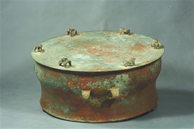 海南省博物馆藏汉代立蛙铜鼓。