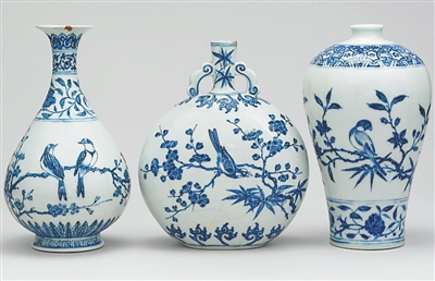 大英博物馆藏明代青花喜鹊登梅瓷器。