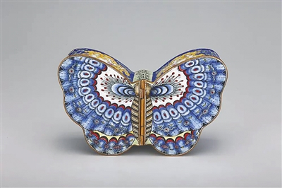 观复博物馆藏 清晚期铜胎画珐琅蝴蝶形盒。