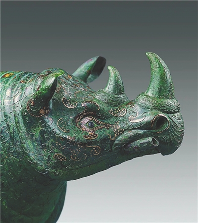 中国国家博物馆藏 西汉错金银云纹铜犀尊。