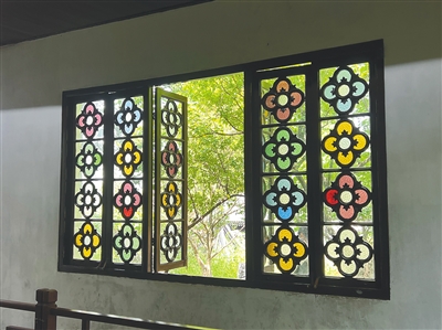 最为独特的是,园中随处可见的彩色花窗。诸多彩色玻璃,奇巧精致,被精巧地镶嵌在雕花窗棂之间,或素净淡雅,或趣味盎然,或缤纷夺目。花窗形成画境,每一个角度,都可以剪一窗风景如画。