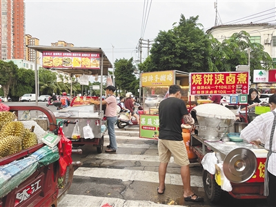 “该路段占道经营问题由来已久,目前,根据《海口市流动摊点占道经营问题分类处置规范管理专项行动实施方案》,街道已经基本完成了流动摊贩信息登记工作,街道正在牵头寻找辖区内闲置区域,洽谈临时安置点,未来将对流动商贩进行分类处置,引导其入市入店经营。”谈及更远的计划,陈副中队长表示,街道正在积极推进相关事宜。