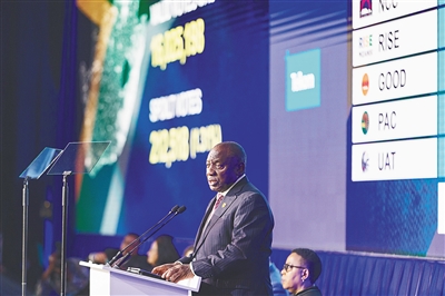 南非独立选举委员会2日正式公布2024年大选计票结果,执政党非洲人国民大会在议会选举中获得国民议会(议会下院)400个议席中的159席。图为在南非米德兰的大选计票中心,南非总统拉马福萨在记者会上发言。新华社发