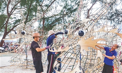 6月3日,在儋州市光村镇泊潮村,村民们正在绑扎“游龙”,制作龙舟,迎接端午节的到来。据介绍,每年端午节,光村镇泊潮村民划龙舟、包粽子、海浴,以丰富的活动隆重度过这个中国传统节日。