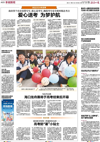 同时,高考期间,考生可凭准考证免费乘坐市内829台公交车及2547台出租车前往考点。此外,特殊群体考生可提前拨打用车服务热线0898-88667813预约用车。