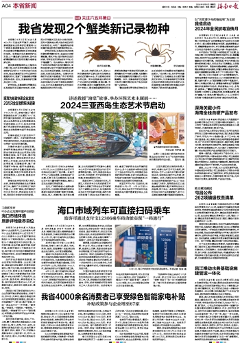 在补贴政策参与企业方面,根据《2024年海南省绿色智能家电补贴实施细则》,经企业自愿申报、市县评选推荐、省商务厅复核公示等程序,省商务厅近日确定第三批共40家绿色智能家电补贴政策参与企业。此前公布的第一批参与企业共18家、第二批参与企业共9家。省商务厅将陆续公布后续参与企业名单。