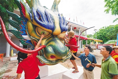 近年来,随着万宁市大力推动小海生态治理,其中,陆续清退上万亩养殖池塘,小海不再“拥挤”,恢复了曾经的开阔,龙舟又有了活动空间。“现在也在提倡渔业转型,我们村里就在思考如何推动传统的养殖、捕捞渔业,面向休闲渔业发展,从而造福本村渔民。”王承章说,自此,打造特色龙舟和端午水上游龙特色活动品牌,成了大家的心愿。