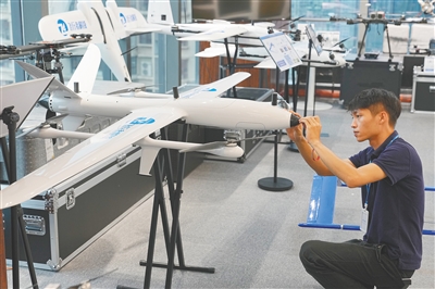 环顾公司展厅,除了“海底游的”,更为显眼的是“天上飞的”,数款无人机或大或小,设计、功能各不相同,令人眼前一亮。这些装备可广泛应用于自然资源、能源、应急、电力、交通等诸多场景。