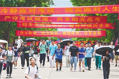 6月10日,在海南华侨中学高中部考点,结束考试的考生走出考场。当天,2024年海南高考正式结束,全省各地考场秩序井然,考风考纪良好。本报记者 王程龙 摄