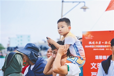 6月10日,在昌江海尾镇新港码头,市民在观看端午农民龙舟赛。 昌江融媒体中心供图