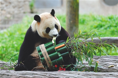 旅韩归国大熊猫“福宝”昨日公开亮相