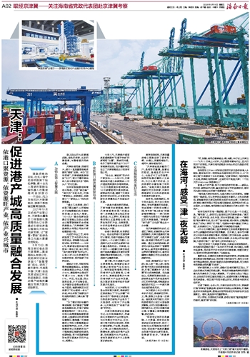 6月13日,海南日报记者走进天津港第二集装箱码头有限公司,实地探访这座全球首个“智慧零碳”码头,进而了解天津市,尤其是中国(天津)自由贸易试验区所在的滨海新区,在推动港产城高质量融合发展方面的经验做法。
