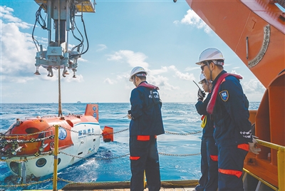 这是为深海考古进行的“深海勇士”号载人深潜器布放(资料照片)。