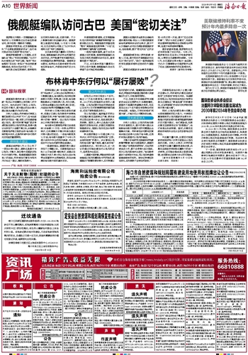 美国白宫国家安全委员会战略沟通协调员约翰·柯比12日接受美国有线电视新闻网采访时也表示,美方不认为俄编队访问古巴威胁美国国家安全,但他强调,美方“密切关注”这次访问。