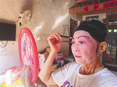 ■ 本报记者 李佳飞天刚放亮,72岁的李圣玉就起床了,利落地洗漱,简单地吃过早餐后,她拿起一柄手持的圆形镜子,开始认真地描眉画眼,上妆绾发。她是定安盅盘舞的代表性传承人,在当地颇有名气,每年受邀表演多达数十场。