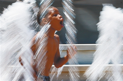 6月13日,男孩在美国亚特兰大一处喷泉戏水纳凉。