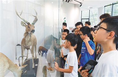 6月15日,以“志愿守护雨林秘境,畅享醇美快乐生活”为主题的国家公园志愿服务活动在海南热带雨林国家公园举行。图为志愿者家庭参观鹦哥岭动植物博物馆。