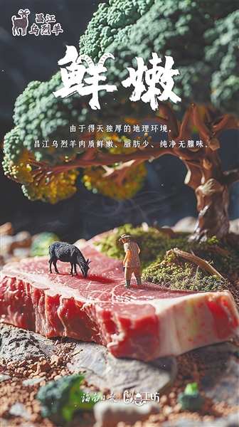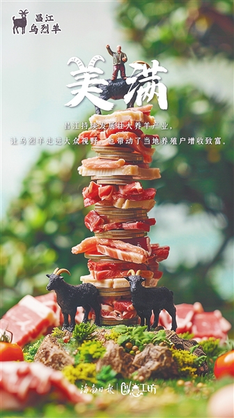 海南日报新媒体特别推出创意海报,用一组带“羊”字的关键词,运用AI生成微缩景观进行视觉呈现,生动有趣地向大家介绍昌江乌烈羊的特点以及产业发展情况。