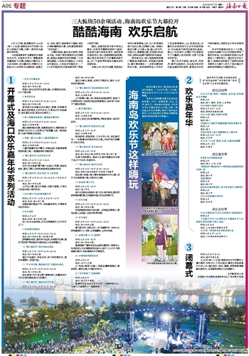 今年是海南首次在夏季举办海南岛欢乐节,本届欢乐节以“酷酷海南 消暑度假”为主题,将推出开幕式及11大系列活动、欢乐嘉年华、闭幕式三大板块共50余项欢乐主题活动,涵盖文化、运动、演艺、美食等多个维度,将拉开海南暑期游大幕,生动展现海南的“花式玩法”。