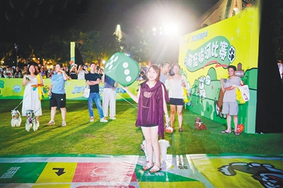 市民带着宠物参加萌宠拔河比赛。