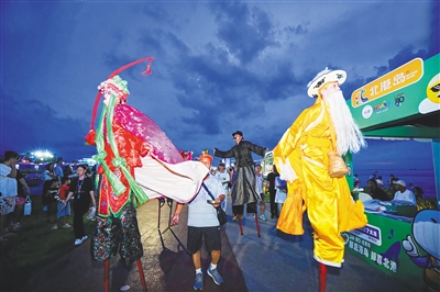 演员们在非遗巡游活动中展示河南滑县高跷非遗技艺。