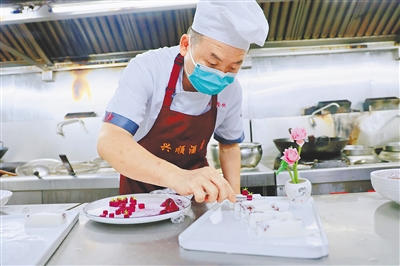 陈显明给做好的红豆糕摆盘。 通讯员 程守满 摄