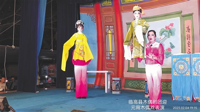 临高人偶戏主要流传于我省的临高和儋州、澄迈县部分地区,使用唱腔语言为临高话。临高人偶戏舞台前不设布幛,一般只在后方挂一块“背景”布。表演时,艺人持木偶登台后,观众既能看到木偶又能看到艺人的肢体神态表演语言。表演过程中,常常“人”“偶”合作,时而“人”替“偶”演,弥补“偶”的不足,保证动作的连续性和完整性;时而以“偶”为主,通过“人”耍尽“偶味”,达到“人情”“偶味”融于一体。