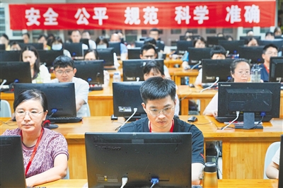 6月18日,在海南师范大学高考评卷场,评卷老师进行高考网上评卷。 本报记者 张茂 摄