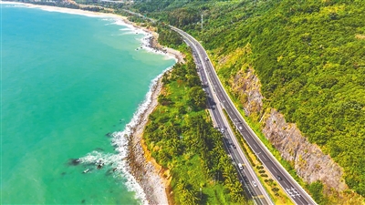 航拍海南环岛旅游公路陵水路段。本报记者 张茂 摄
