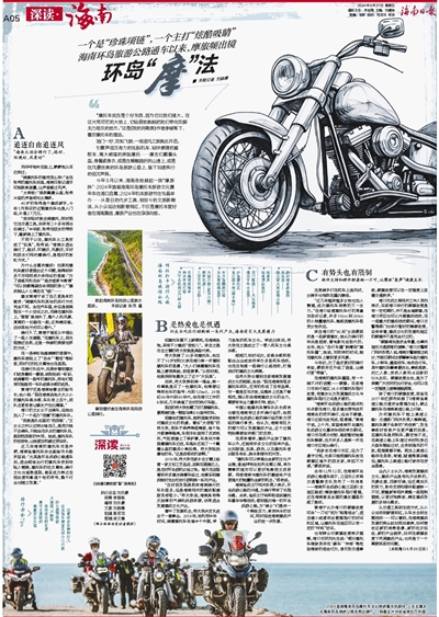 业内人士认为,海南发展摩旅文化、摩旅产业是有先天优势的,风景优美、四季可骑,但还需后天的努力,软件支持和硬件配套缺一不可,要重新审视并调整一些限制措施,以更好地释放、满足摩旅发展的多样化需求。